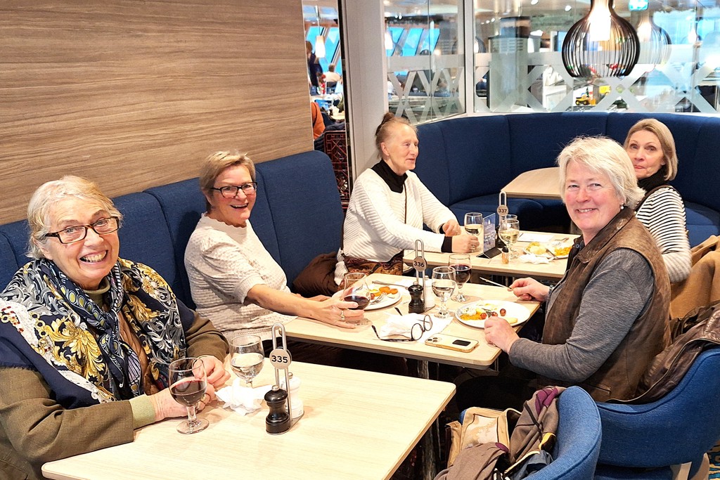 Alle disse gruppene møtes så til en hyggelig førjulsjunsj om bord på Color Hybrid etter avgang fra Strømstad. Øl, vin og mineralvann inngår i førjulslunsjen.